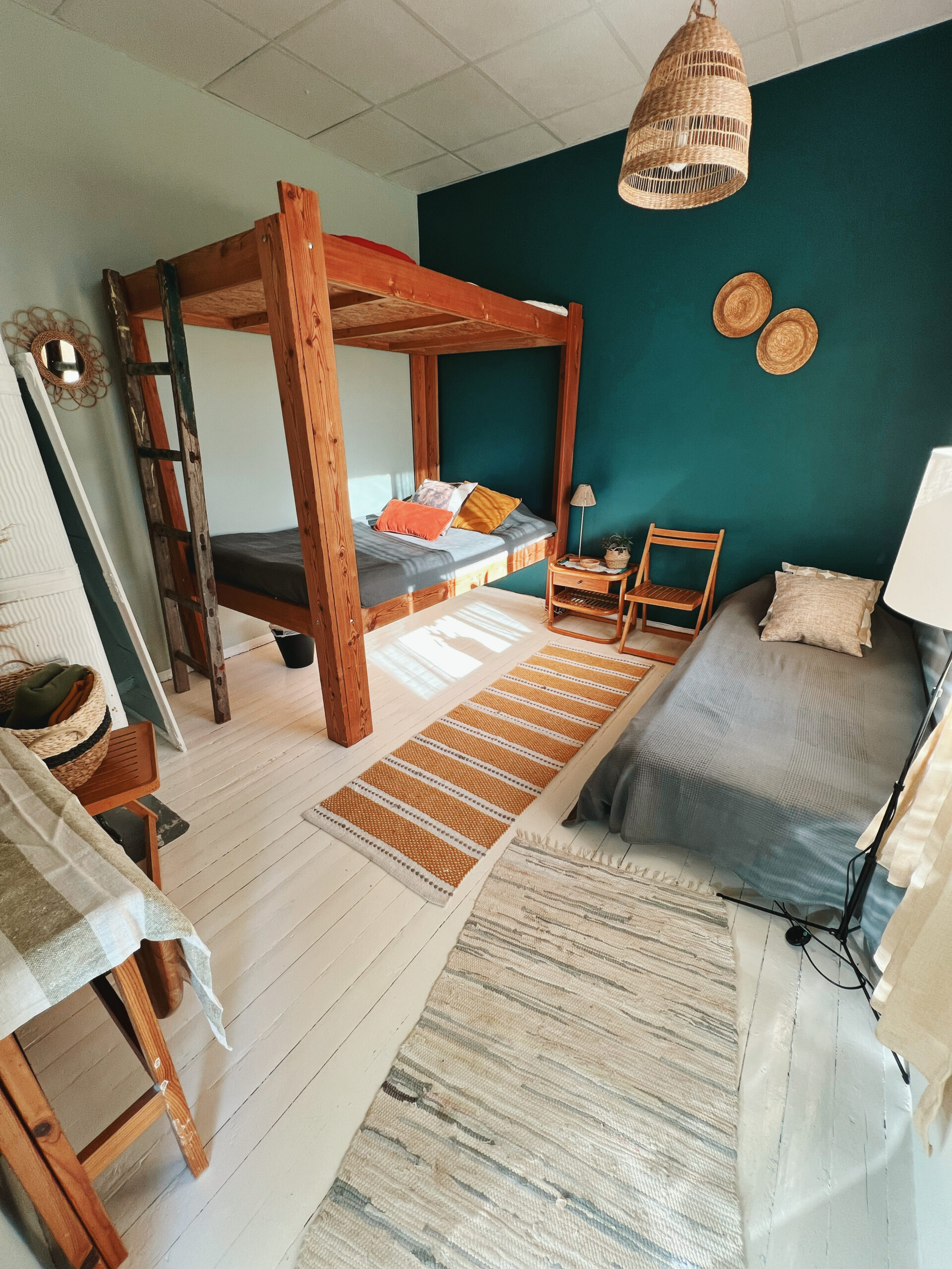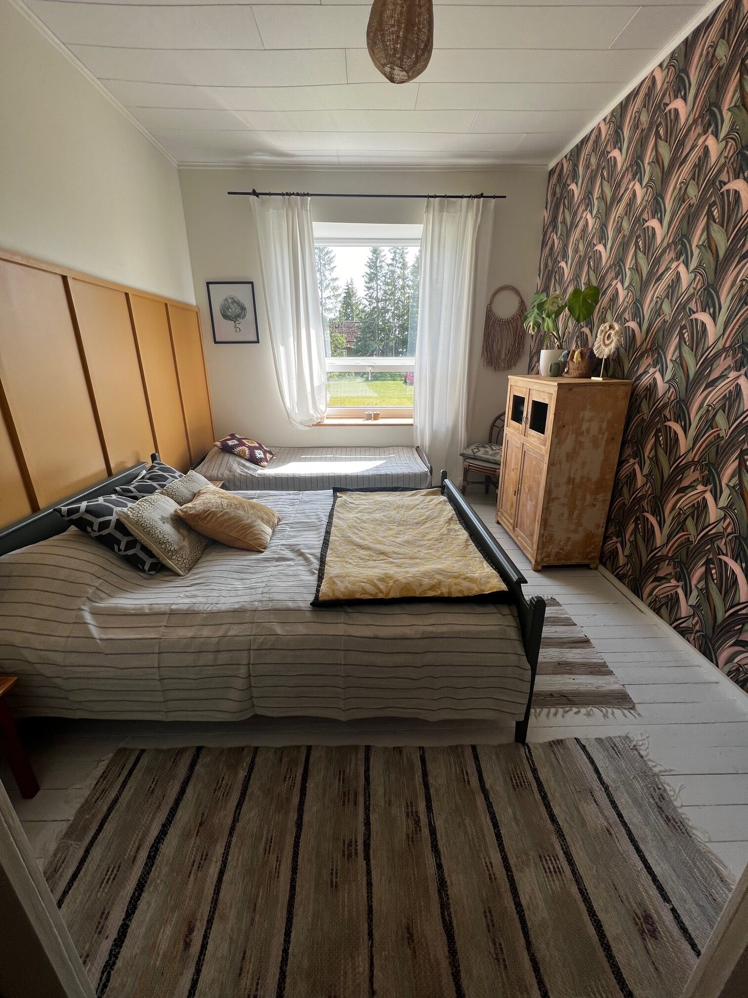 We have plenty of space, unique bedrooms, a spacious yard, an indoor play corner and an outdoor playground for children, and a cozy outdoor lounge with a fully equipped kitchen and a comfortable living area where you can read a book, play board games, or just relax and take the best naps in the world. You can enjoy freedom, visit the sauna, take a walk to the seaside, or lounge in a hammock.